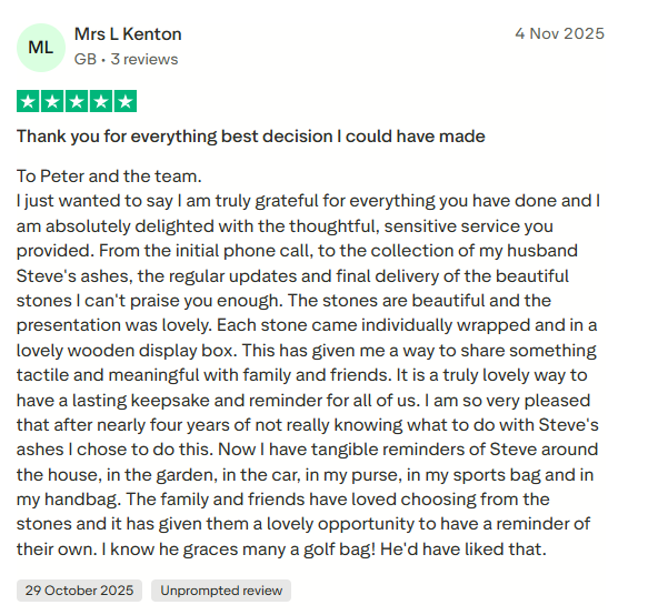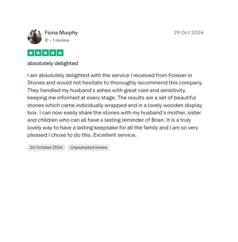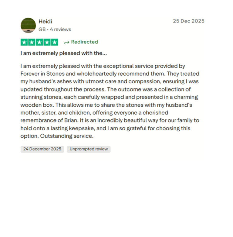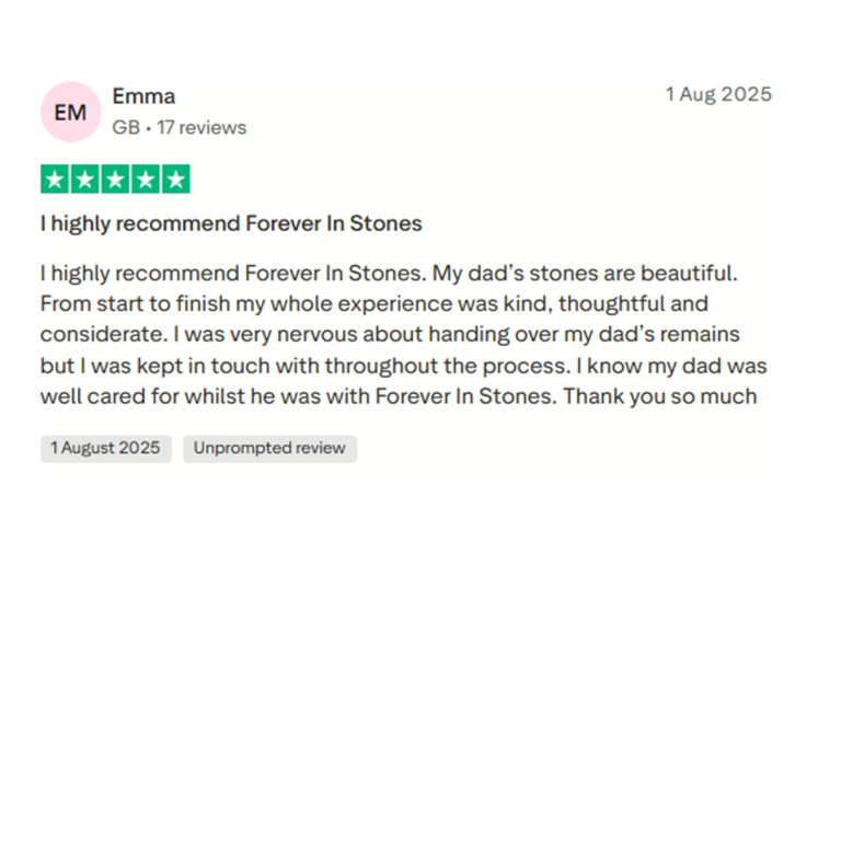 Kind words from families who chose Forever in Stones. Independent Trustpilot reviews, shared openly.